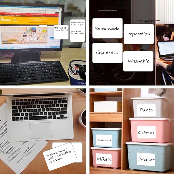 • Self-adhesive small Dry Erase Board Stickers adhere well to a variety of smooth surfaces, including paper, cardboard, creami, plastic, wood, glass and metal