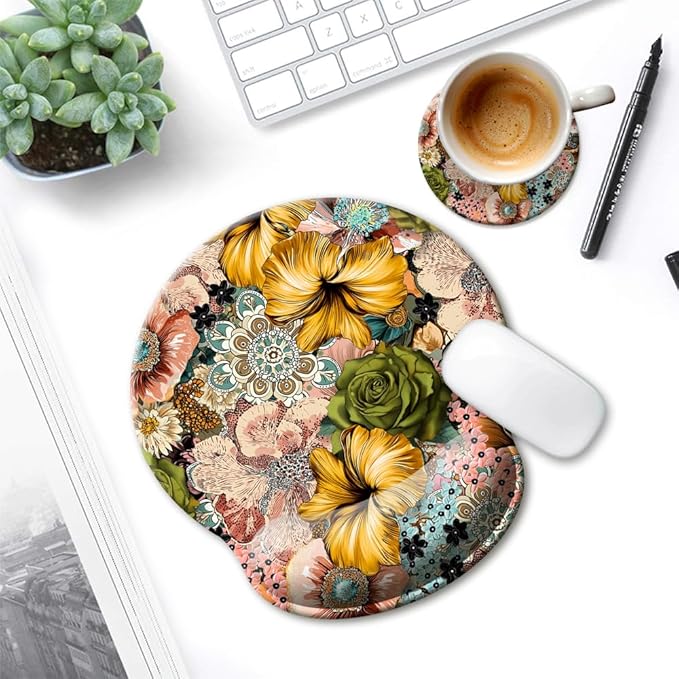 HOPONY Mouse Pad with Wrist Rest,Ergonomic Mouse Pads Wrist Support for Desk,Large Mousepad for Wireless Mouse Gaming Laptop Work Home Desk Accessories Office Supplies Decor,9 x 10 in,Boho Floral