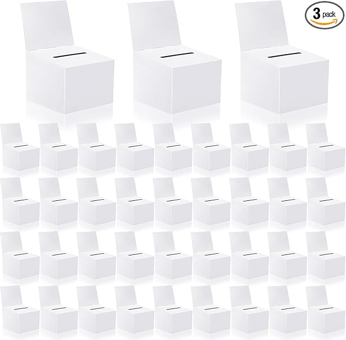 • Widely Used:These raffle boxes can be used in a variety of scenarios, voting, raffle, fundraising raffle box, cardboard suggestion box, contest entry box, wedding reception hint box card box, comment box, charity box, giving box, money collection box, money box, cash box with slot, collecting business cards from the counter or table, etc., money restaurant tip jar, Great for community events, church events, fundraisers, voting places, classrooms