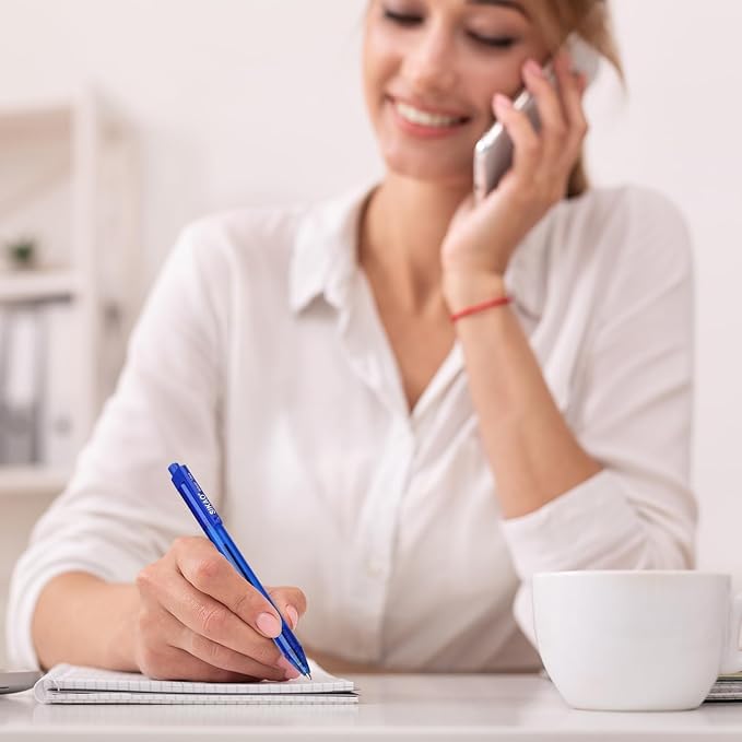 • 3️⃣ COMFORT HOLD: Designed with a balanced round barrel and comfortable hold for long writing sessions. The translucent blue barrel lets you easily monitor ink levels — perfect for teachers, students, and office workers.