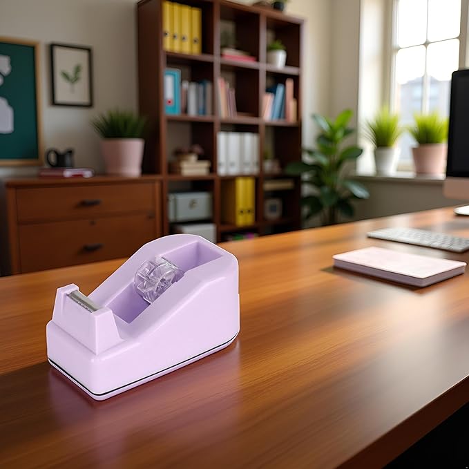 • Convenient Design: This heavy-duty desktop tape dispenser features a weighted non-skid base for stability and a plastic body in a vibrant purple color.