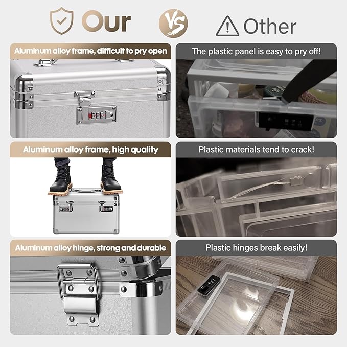 • Sturdy Construction: Made with a durable aluminum alloy frame and MDF material, this locking storage box outperforms plastic options. More robust and reliable, with dustproof protection for easy cleaning