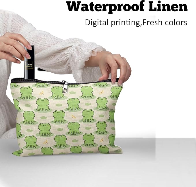 • ★High Quality Material:The Cute Frogs makeup bag made of linen material, it is strong and durable to use.