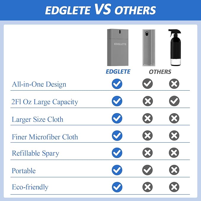 Lifetime Refillable – Save 50% vs. Disposable Cleaners – The Edglete screen cleaner kit is expertly designed to clean a wide range of delicate electronic screens, including those on computers, car screen, laptops, smartphones, console, monitors, pc, MacBook, iPads, iPhones, Mac, tablets, glasses, cameras, camera lens, TVs, and even the most sensitive OLED, LCD, LED, and CRT screens. A must-have accessory for anyone who appreciates a flawless viewing experience