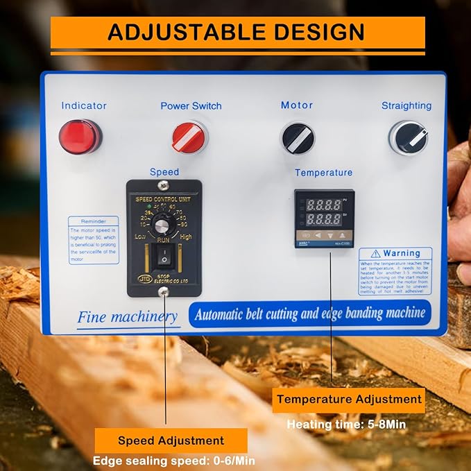 • EASY OPERATION:Multi-functional microcomputer edge banding machine adopts numerical control operation,one-key start,temperature controller monitors the temperature at any time,uniform heating,not easy to paste glue.The speed is adjustable.