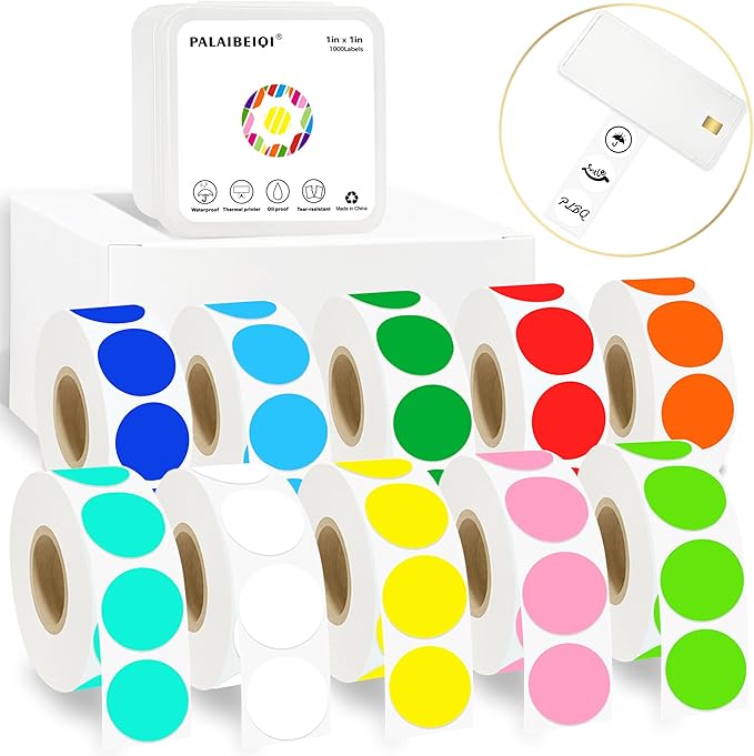 1 Inch Round Removable Thermal Sticker Labels, Color Dot Stickers, Waterproof Color Coding Sticker for Thermal Printers, Office, Retail, Home and Warehouse Organization(10 Color, 10000 Pcs)