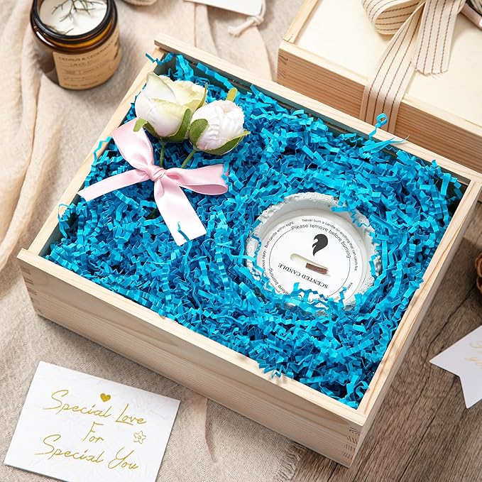 • Shredded Paper for Gift Box: Decorate your gift with this blue crinkle paper to fully display your gift and make your gift more attractive.Perfect to fill the extra spaces in your gift boxes or basket.