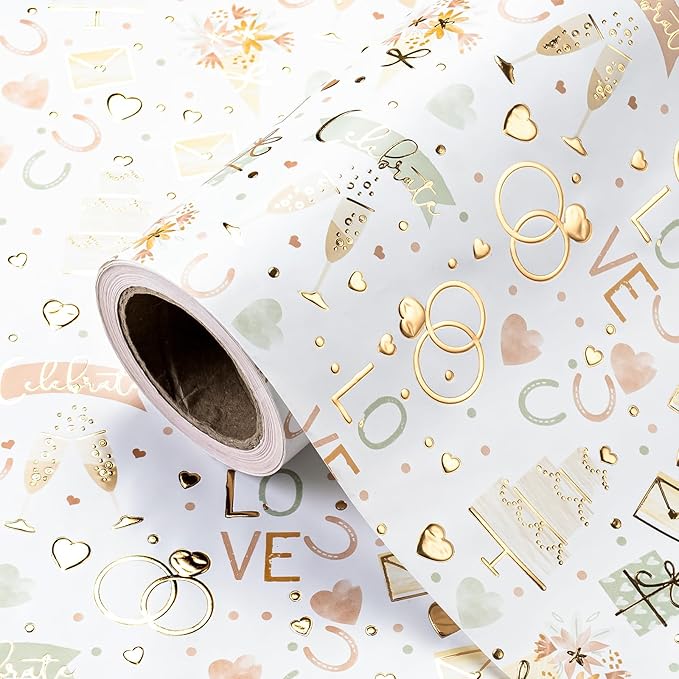 • Wedding Design: Gold foil cheers, wedding rings, hearts, gift boxes, and “Celebrate” “Love” lettering with 3D embossing add a touch of luxury and elegance. It will make your gift - wrapping more textured, stylish, yet special.