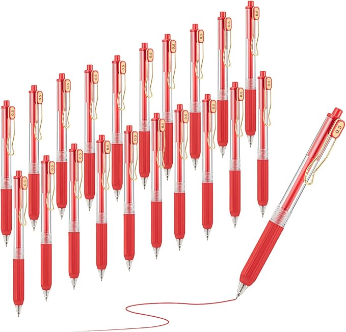 Aozora 20 Pack Red Gel Pens Fine Point Smooth Writing Pens Retractable Red Ink Pen with Soft Grip 0.5mm Quick Dry Office School Supplies Gold Clip