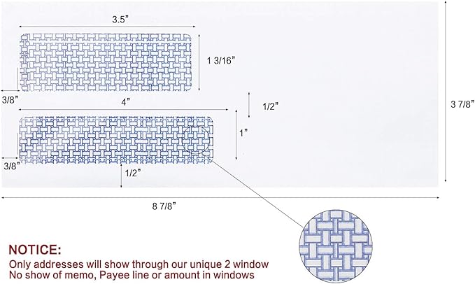 • DOUBLE WINDOW DESIGN: Only sender and return address will show on your QuickBooks invoices and monthly bills through our unique 2 window . No show of memo, Payee line or amount in windows. Suitable for QuickBooks Invoices and business billing statements.