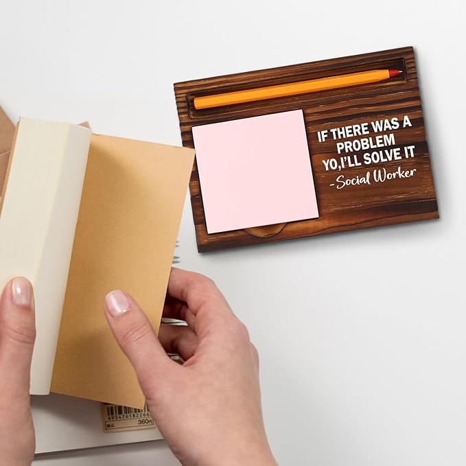 Thank You Social Worker Gift, If There was a Problem Inspirational Quote, Motivational Office Decor, Perfect for Social Workers, Birthday, Retirement, New Job, Self-Stick Note Pad Holder XBT25