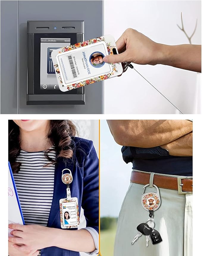 • 【Multifunction】The easy-to-use and powerful badge reel brings a lot of convenience to your lives. The funny badge reel comes with steel carabiner belt clip, 1 key ring and 1 keychain. You can easily hang up keys, work cards,student cards ,credit cards or ID cards, and clipped onto the uniform, shirts pocket, backpacks, belt or anywhere you want. It is also a perfect accessory, just like a cute brooch to make you cool and fashionable.