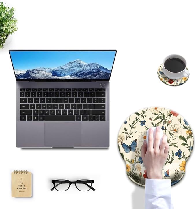 HOPONY Mouse Pad with Wrist Rest,Ergonomic Mouse Pads Wrist Support for Desk,Large Mousepad for Wireless Mouse Gaming Laptop Work Home Desk Accessories Office Supplies Decor,9 x 10 in,Butterfly Floral