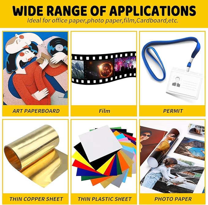 • 【Accurate Cutting】The cutting size is expressed in centimeters and inches. Cutting is more accurate, convenient, fast, safe and practical. The blade is sharp and can cut ten pieces at a time. The PVC card is also easy to cut. Paper transfer and feeding, the finished product is free of burrs, and ordinary cutting tools cannot achieve cutting accuracy, linear performance and smoothness.