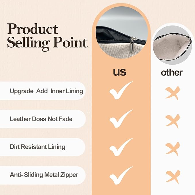 • Superior Quality: Constructed from linen and featuring a smooth zipper closure, our canvas makeup bag blends elegance with durability. The interior is lined with waterproof canvas, offering both high quality and practicality.