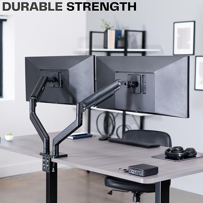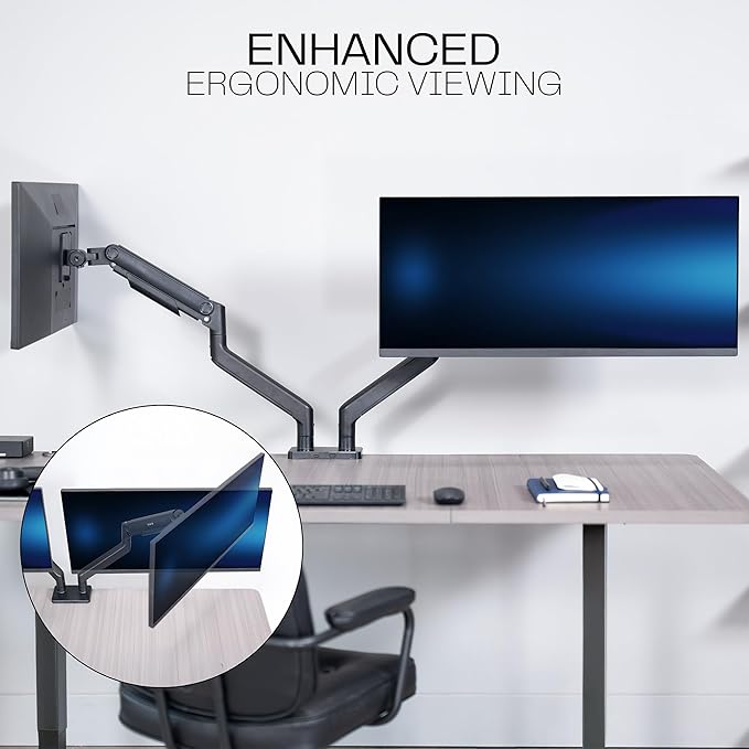 • Premium Tension Arms: Spring-assist arms counterbalance the weight of your monitors for optimal ergonomic height adjustments, repositioning large screens at the touch of a hand