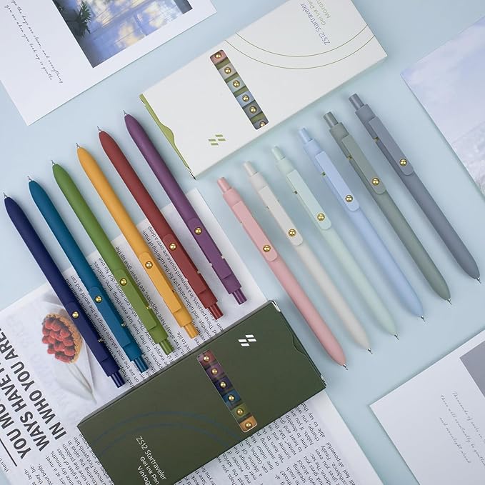 • Color : 12 Pcs Gold Morandi and Retro- Black Ink