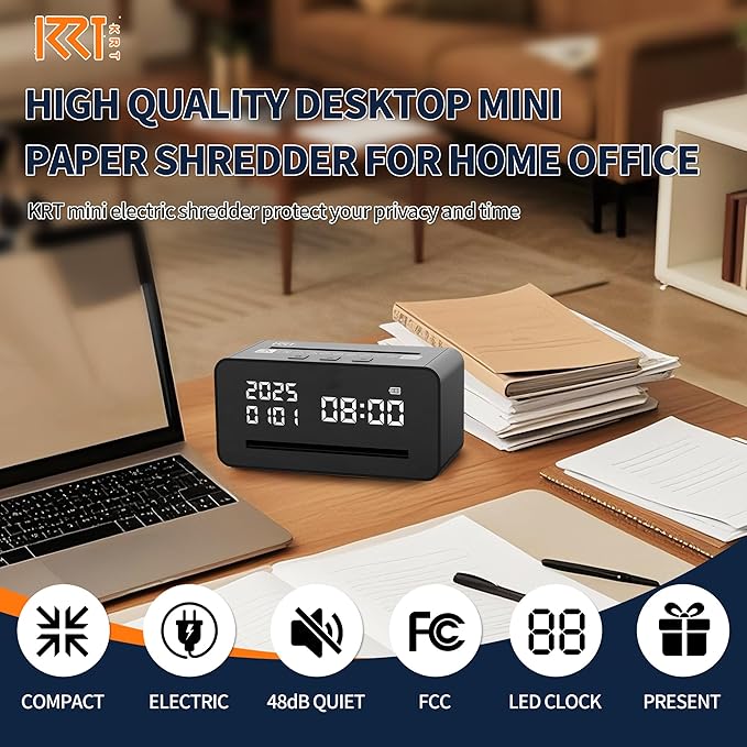 • 【High Quality Electric Mini Shredder With FCC】The KRT compact paper shredder uses a DC motor and high-quality blades, works well at shredding paper into strips compared to manual shredders, protecting personal privacy. It is also FCC certified, ensuring quality assurance.