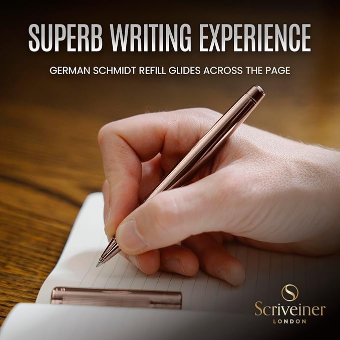Scriveiner Rose Gold Rollerball Pen - Stunning Luxury Pen, Schmidt Ink Refill, Best Roller Ball Gift Set for Men & Women, Professional, Executive Office, Nice Pens