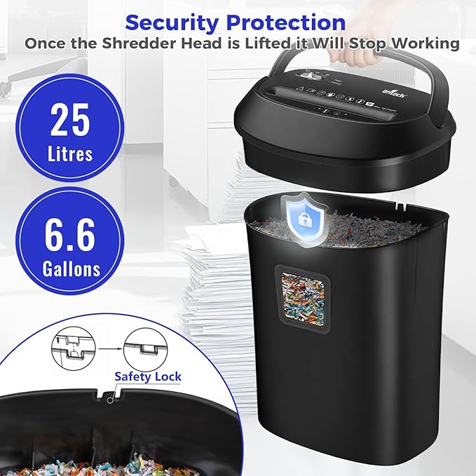 • 【Easy Emptying】This heavy duty paper shredder comes with 6.6 gallons bin and portable handle that offer less frequent and easy emptying. Transparent window helps to see when it is full. Also, THIS SHREDDER DO NOT NEED LUBRICANTS