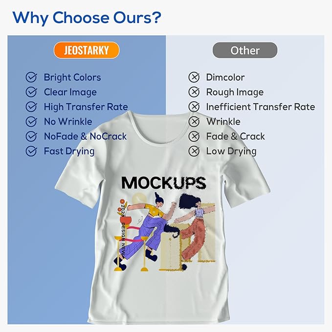 • Fade & Wash Resistant:Jeostarky Sublimation Ink Colors resist cracking, peeling, and fading through washes and UV exposure, safe for skin-contact textiles