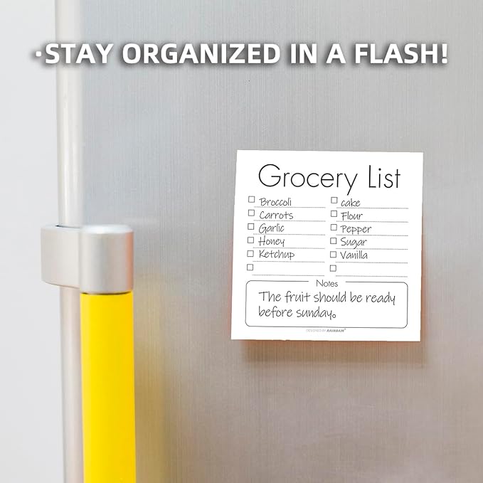 Grocery List Notepads for Fridge 4 Pack/200 Sheets 3x3 Sticky Notes Set, High-Adhesive Productivity Planner Pads for Check List Notebooks for Journal Office School Home, Bulk Stationery Gift