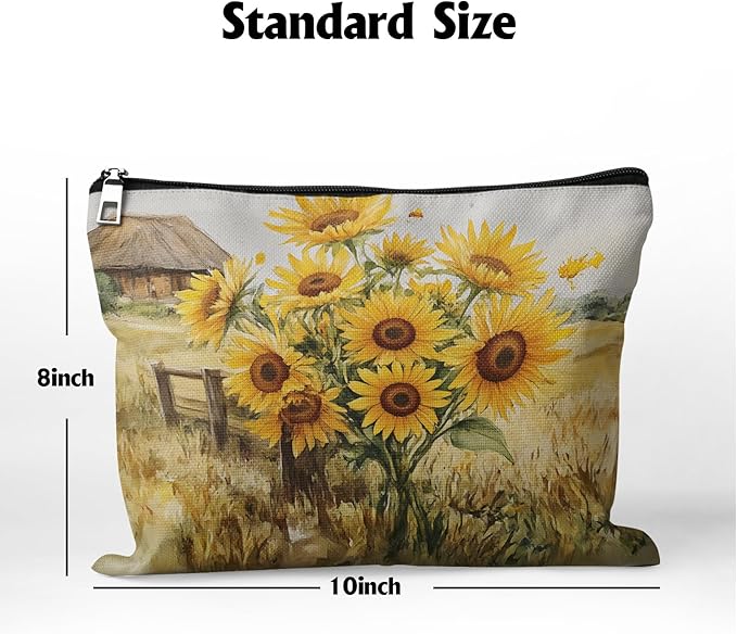• ★Large Capacity and Lightweight:The Sunflower Field makeup bag dimensions: 10*8 in (26*20cm). It is conveniently store and carry personal items,suitable for outing party or travel.