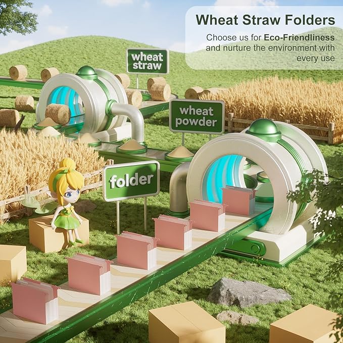 • ECO-FRIENDLY & SUSTAINABLE:EcoStash Wheat Straw Hanging File Folders are made from wheat straw, a sustainable agricultural by-product and a renewable resource. By using wheat straw, we reduce reliance on traditional plastics and offer a more environmentally conscious choice. Wheat straw material is BPA-Free, making it a safer and more sustainable option for your everyday needs.