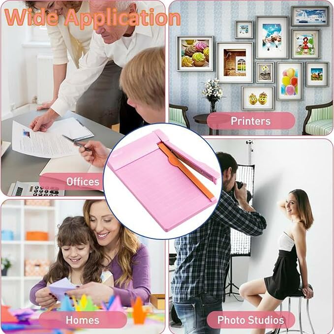 • 【Wide Application】:The paper cutter can meet various trimming needs: cutting cardboard/paperboard/vinyl paper, photos, pictures, business cards, labels, scrapbooks, and paper DIY handicraft projects, making it very suitable for use in offices, homes, printing factories, studios, and more.