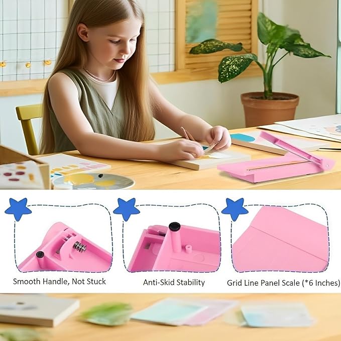 • 【Easy To Use】:With its simple and intuitive design, the A4 paper cutter is easy to operate and suitable for everyone from beginners to professionals. Suitable for Kids handicraft production, kindergarten handmade paper art making, DIY scrapbook at home, candy paper making.