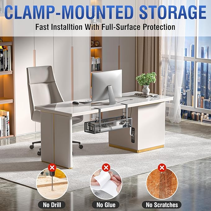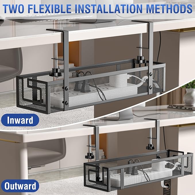 • 【Easy Installation & Desk Protection】 Set up the cable management tray in under 3 minutes with no drilling required. It includes anti-scratch rubber pads to protect your desk surface, unlike other organizers that may damage your furniture.