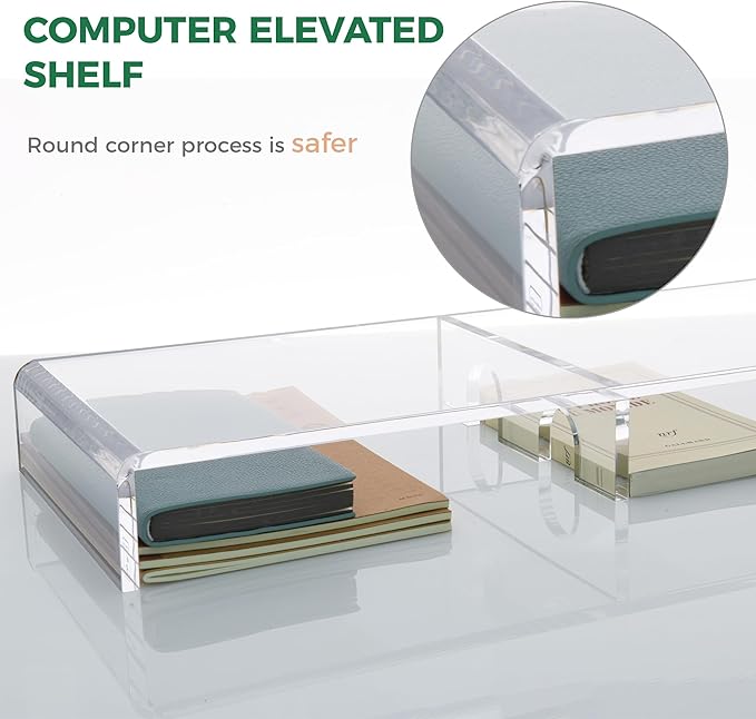 • Universal Compatibility & Versatile Use: Highly portable and adaptable, this multi-purpose acrylic computer stand suits countless scenarios: use it as a sleek PC monitor stand, a TV shelf (with under-shelf space for cable boxes or wires), or a laptop stand paired with an external keyboard. It also coordinates effortlessly with other acrylic risers for a cohesive setup.