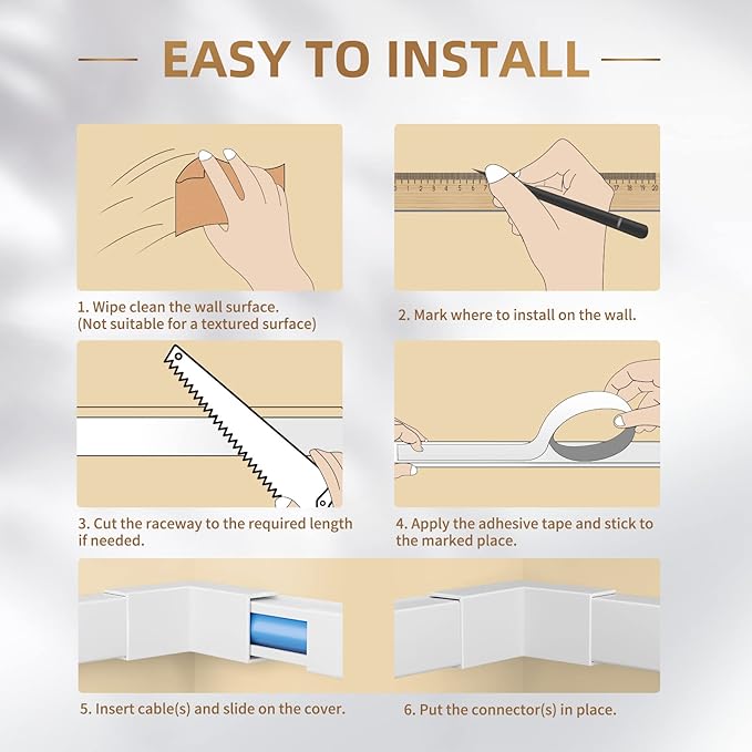 • DIY as You Like: If you want to cut cable hiders shorter, you can easily cut cord hiders with sharp scissors or a saw. Of course, you can also paint the wiring ducts to add a touch of aesthetics to your home