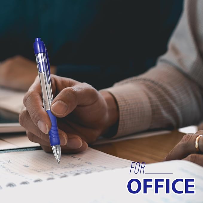 • Retractable Pens with Clip: this soft grip ballpoint pens have a retractable design to avoid the ink from drying out, just press down to use it, never worry about losing the cap; And the retractable pens comes with a clip that allows you to easily secure it in your notebook, binder or pocket for easy portability