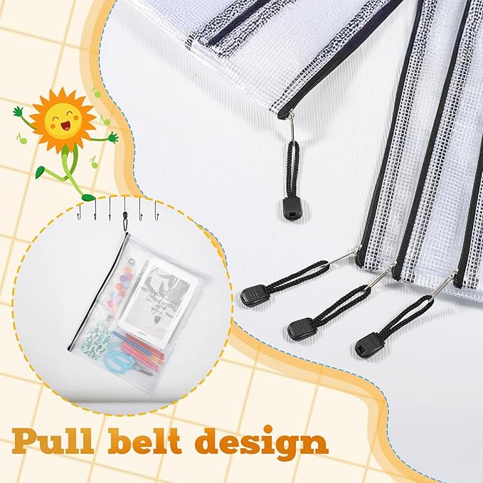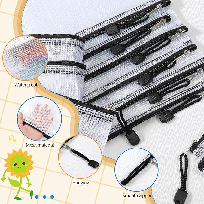 • QUALITY MATERIAL: High quality PVC material is strong and durable, the mesh bag material structure prevents tearing, and the zipper of the transparent zipper mesh bag is sturdy and not easy to fall off, convenient for accessing and placing documents. The string on the zipper can be used for hanging, convenient and fast to use, and easy to carry.