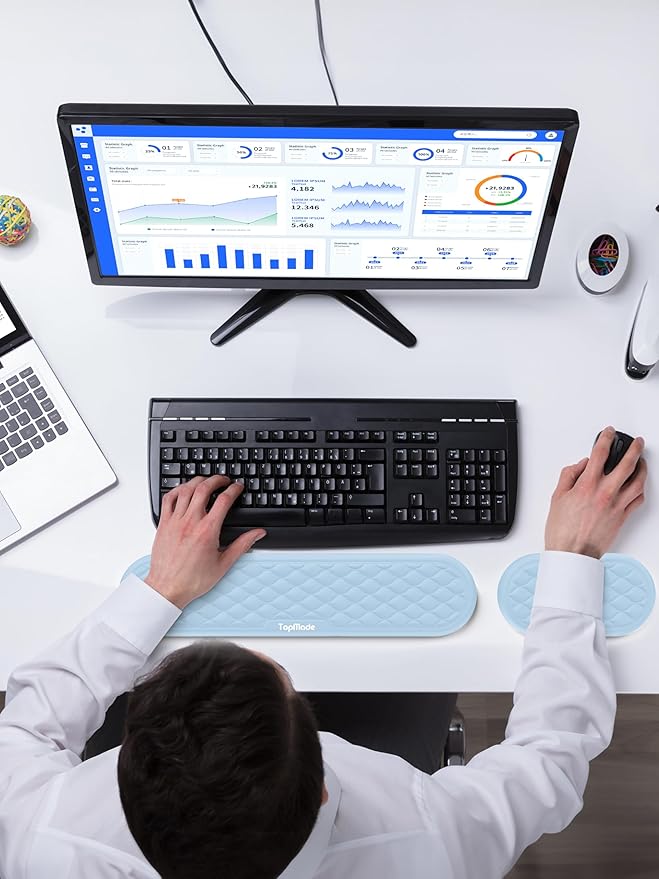 • 【Perfect Ergonomic Design】 This wrist rest set is specially designed to protect your wrists during long periods of keyboard use, improve wrist posture, prevent joint and wrist problems, and relieve pressure on the elbows and shoulders during long periods of computer use