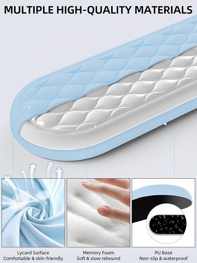 • 【Soft Memory Foam】This wrist rest features a smooth, breathable Lycra fabric exterior with high-density premium memory foam padding. Its slow rebound properties and resistance to deformation provide unparalleled comfort and support for your hands during work, study, or gaming