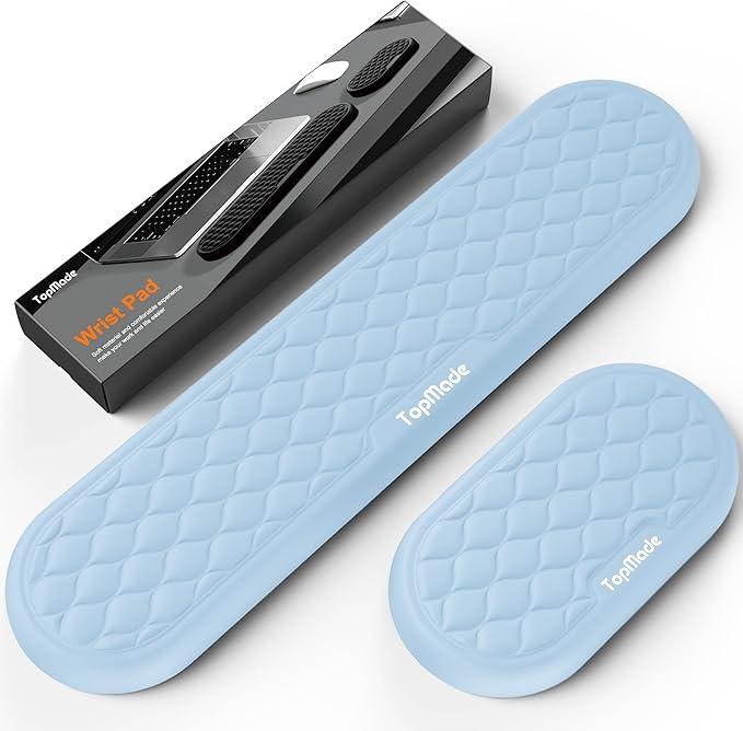 TopMade Upgraded Wider Wrist Rest Set, Soft Memory Foam Keyboard Hand Rest Pad, Computer Ergonomic Keyboard Mouse Wrist Support for Typing Pain Relief, Comfort for Office, Gaming, Study, White Ice