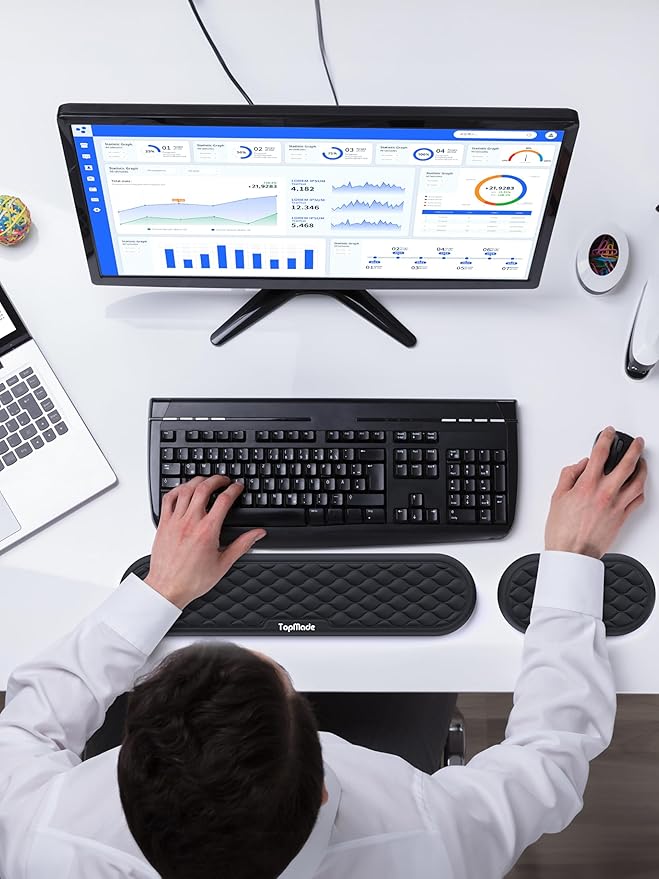 • 【Perfect Ergonomic Design】 This wrist rest set is specially designed to protect your wrists during long periods of keyboard use, improve wrist posture, prevent joint and wrist problems, and relieve pressure on the elbows and shoulders during long periods of computer use