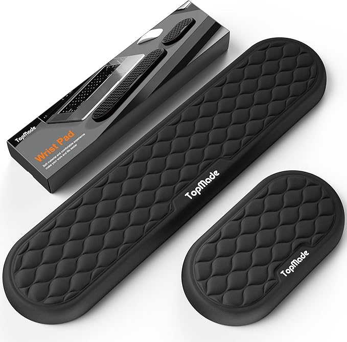 TopMade Upgraded Wider Wrist Rest Set, Soft Memory Foam Keyboard Hand Rest Pad, Computer Ergonomic Keyboard Mouse Wrist Support for Typing Pain Relief, Comfort for Office, Gaming, Study, Black