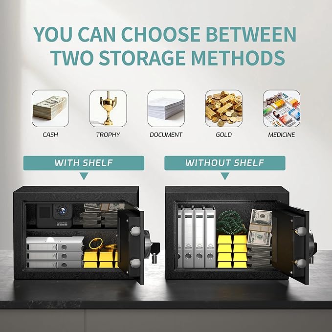 • 【Multi-functional storage】The bottom of the safe features a felt lining to prevent scratches on stored items; the built-in removable shelves allow you to arrange your valuables according to your needs.
