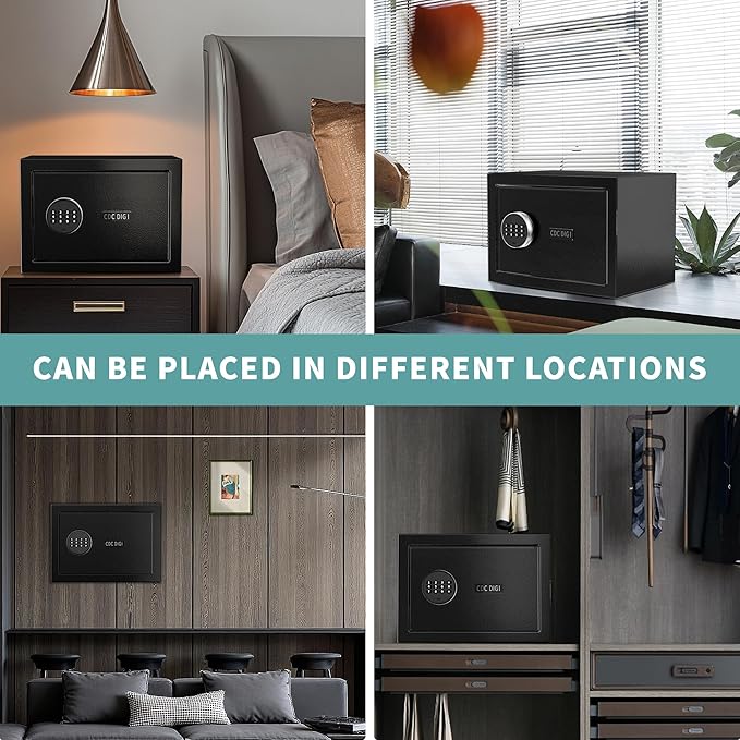 • 【High Security】CDC DIGI safes have two enhanced steel bolts, pry-resistant concealed hinges and a tamper-proof doors to resist drilling, prying, and impact. Their reinforced frames provide impenetrable protection for your valuables, making them suitable for homes, offices, hotels, dormitories, and other settings.