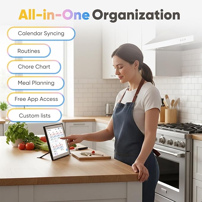 • 【All-in-One Family Organizer】 Streamline daily life with a 10.1" touchscreen smart calendar that combines schedules, chores, meal planning, grocery lists, reminders, and more—all in one central hub for the whole family.