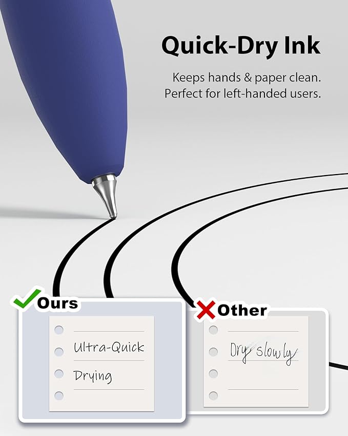 • Comfortable Non-Slip Grip:The ergonomic pen barrel has a soft rubberized coating for a comfortable, non-slip grip, so you won't get fatigued even after long hours of writing.