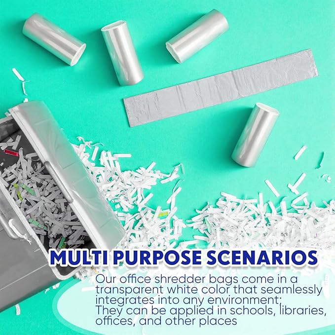 • Multi Purpose Scenarios: our office shredder bags come in a transparent white color that seamlessly integrates into any environment; The transparent design makes it easy to monitor the level of shredded paper contents; Transparent shredder bags are compatible with most shredders and have a star-shaped bottom design to help ensure the bag won't tear; They can be applied in schools, libraries, offices, and other places