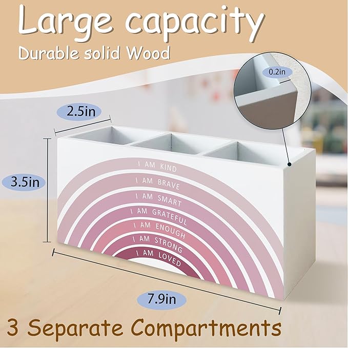 Pink Boho Rainbow Positive Affirmations Pen Pencil Holder for School Classroom Office Desk, Book Center Calming Corner Playroom Decor, Inspirational Makeup Brush Toothbrush Holder Organizer