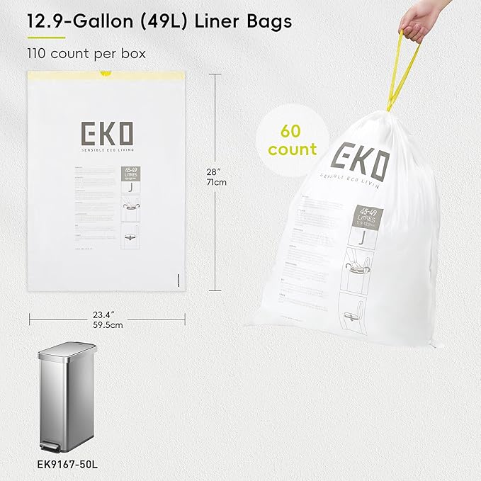 • Versatile Compatibility – Designed for EKO 12.9-gallon trash cans, but also fits a wide range of cans from 12 to 13 gallons (45-49L), making them a versatile option for any kitchen or household