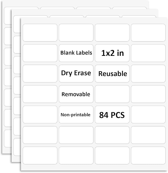 SVNOOC Multi-Use Removable Dry Erase Labels Stickers, White, 84pcs Reusable Sticky Notes (1 * 2 inches White)