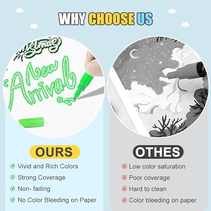 • 【Easy to Use Store】 Simply shake, press the tip gently to start the ink flow, and begin creating! Always recap after use and store markers horizontally to maintain optimal ink performance.