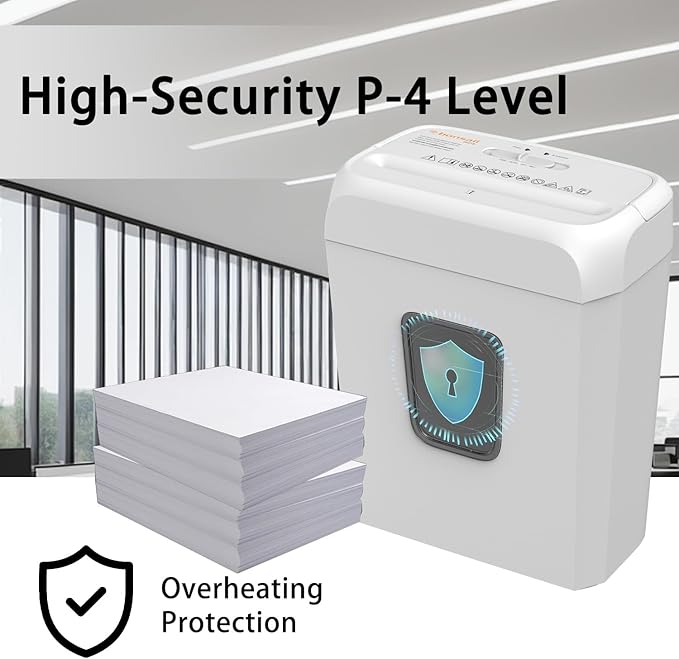 • 【Built to Last & Protect】 This shredder prevents paper jams through auto start/stop and a manual reverse mode. It further extends its lifespan with overheat protection and ensures user safety by automatically stopping if the head is lifted.